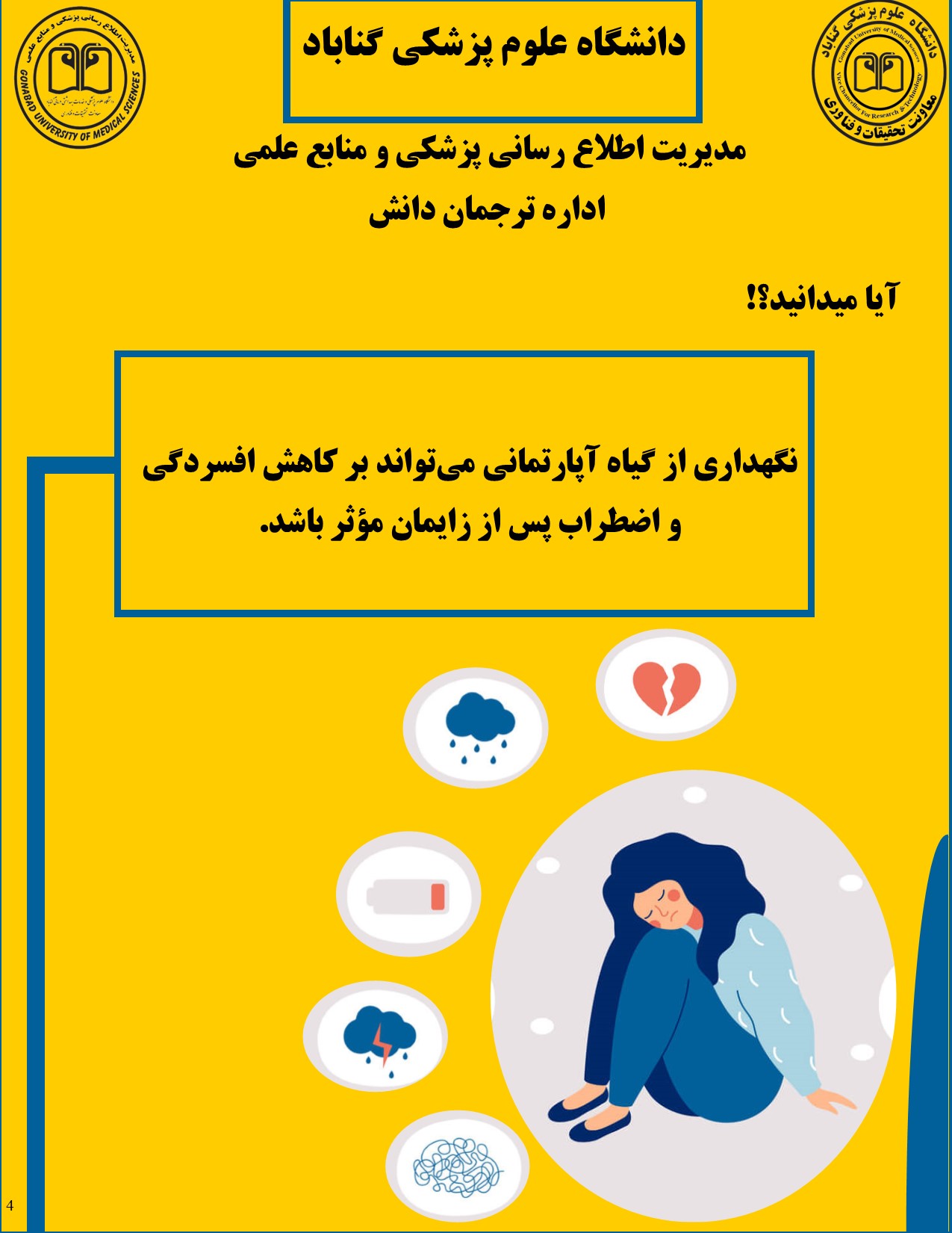 عنوان پروژه: بررسی تأثیر نگهداری از گیاه آپارتمانی بر افسردگی، اضطراب و کیفیت زندگی زنان در دورهی پس از زایمان در شهرستان گناباد سال 1400